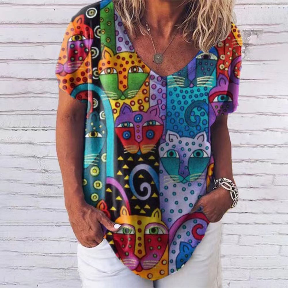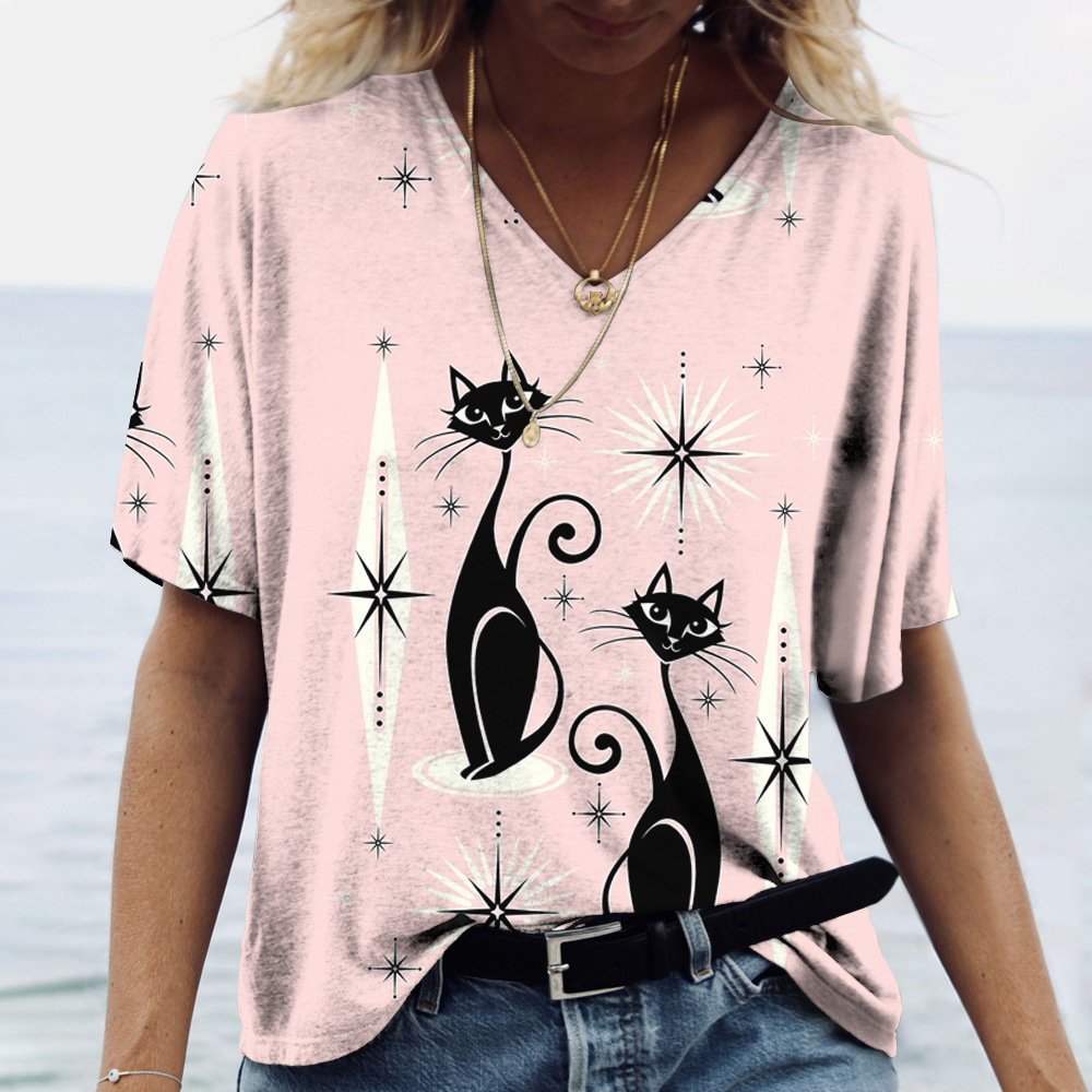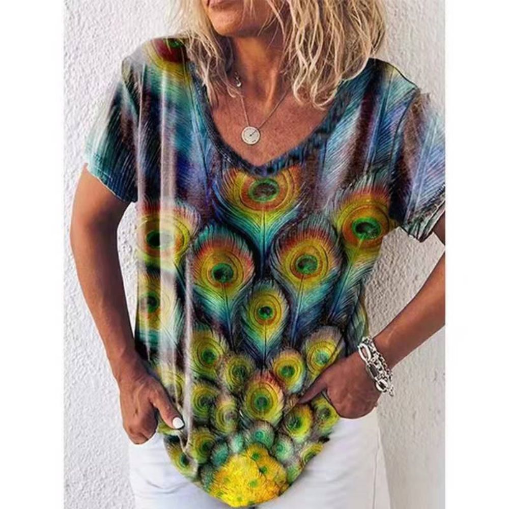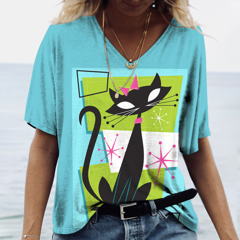 Summer Women's V-Neck T-Shirt with 3D Print